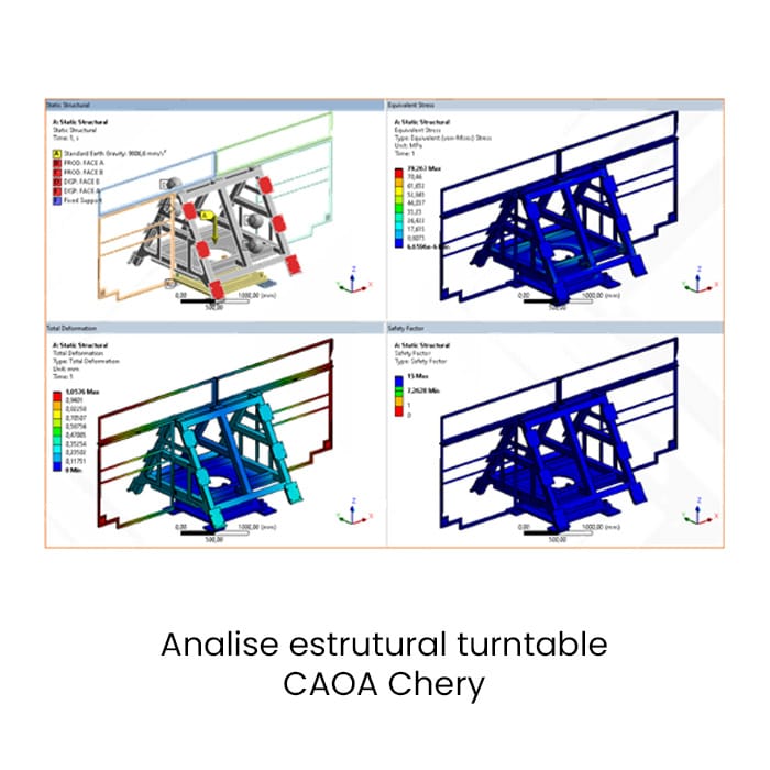 Validação de estruturas metálicas, produto e dispositivos das mais diversas funções através de métodos e softwares conhecidos e utilizados pelo mercado atual, com o objetivo de aprovação de um novo projeto ou identificação de melhorias para redução de custos ou robustez.