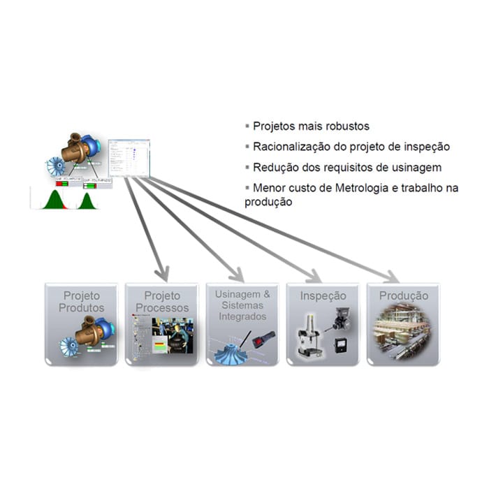 Para otimização do processo e melhor distribuição de tolerâncias para fabricação, tanto do produto quanto do equipamentos do processo, são utilizados dados estatísticos para verificação da repetibilidade e confiabilidade do processo como um todo.